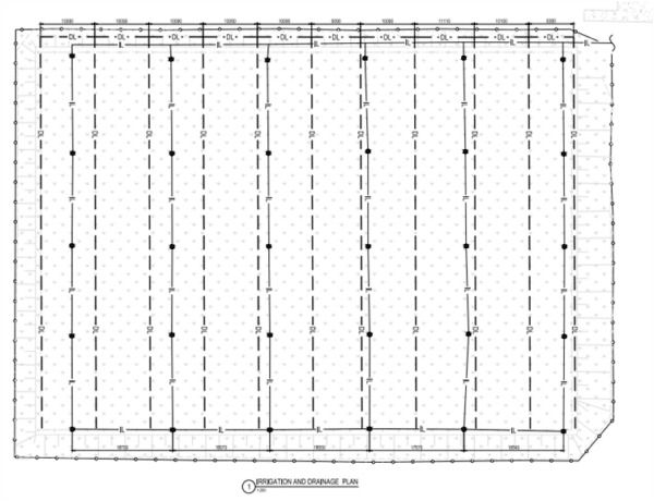 Plan above shows how the Drainage Lines run between the Irrigation lines of the field.