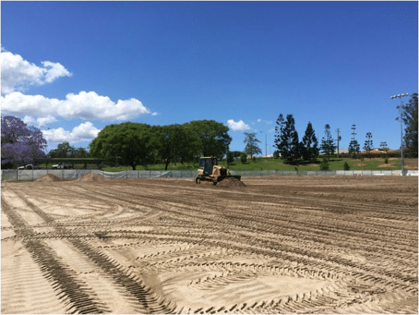 Morton bay regional council employed Hanceys Turf as the preferred contractor to re build the main soccer field at the site Bob Brock sports fields, Marsden road, Dakabin. having completed a design and construction on a adjacent field at the same site a year earlier. The pitch showed some very familiar characteristics to turf managers on highly used council sites; Compaction, poor drainage, severe wear and tear down the middle of the field (width of the penalty box) and being over run by crows foot.