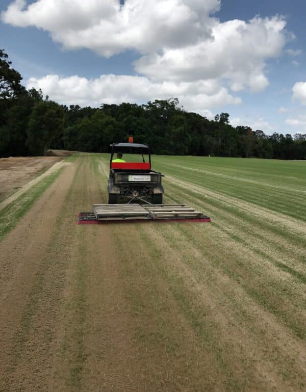 We had selected a 25,000m2 Pad which was laser graded and shape to the same falls as the final surface, we then installed a Full Automated Pop Up Irrigation System to the area, fed by the Stanley River, Storage Dams and Bores.