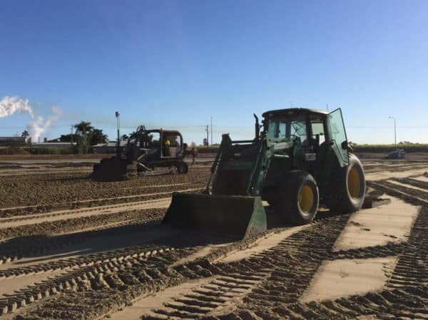 Once the amendments had been added and worked in two directions with Hanceys turf Blecavator’ a smaller laser bucket grader was used to final trim the field on +/-5mm before turfing.