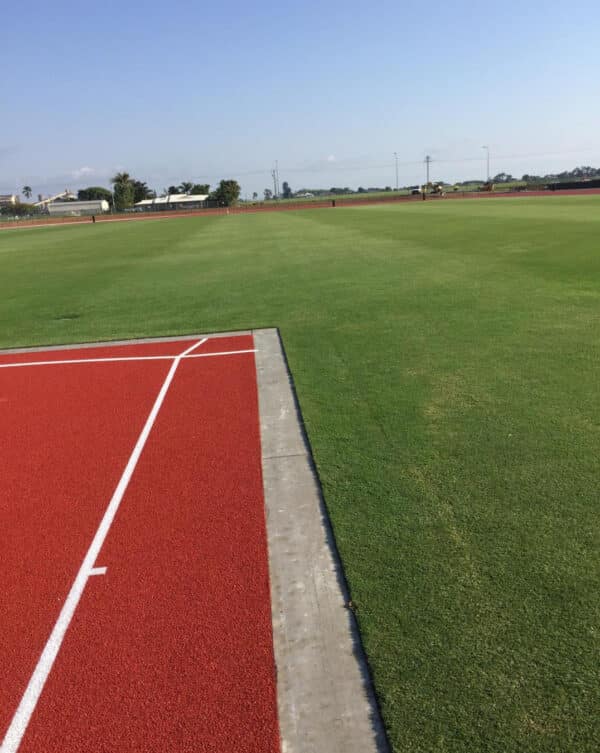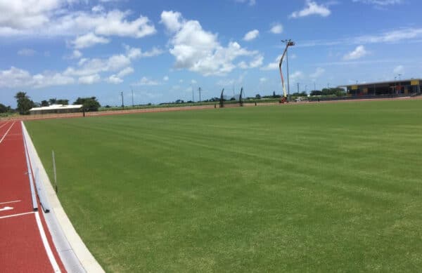 Hanceys turf has gained a reputation for building high quality sports surfaces of all types in South east Queensland but were invited as the preferred contractor to build an athletics infield and multi purpose facility up in Mackay. Having worked successfully with Track specialists, Polytan, at both Runaway bay sports super centre (Gold Coast) and Sheldon college (Brisbane) in recent years, Paynter Dixon, the principal contractor for the Mackay regional council’s new sports precinct had no hesitation when it came to selecting two contractors to build an artificial athletics track and grass infield.