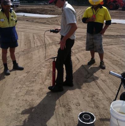 Throughout the stringent construction process all fields had witness and check points to maintain the high standards of the specifications. After the final laser level of the final layer of sand had been trimmed and irrigation heads been lifted a Clegg and infiltration test was carried out to make sure correct compaction levels reached and infiltration rates are correct. A final survey inspection was carried out to confirm all levels and surface was ready for turf.