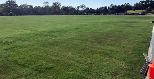 The turf selected for the field was Wintergreen couch grass grown at Hanceys farm at Woodford on one of its sand based paddocks so as to marry in with the profile onsite. Washing the turf was not necessary then (as is usually the case when building a high specification field) meaning a large cost saving to the client. All works were completed within a 4 week window and again a 10 week maintenance schedule began.
